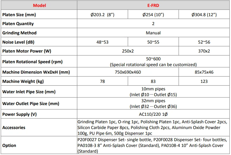 The E-FRD is a dual-disc, dual-motor manual grinding and polishing machine specifically designed for metallographic sample preparation.