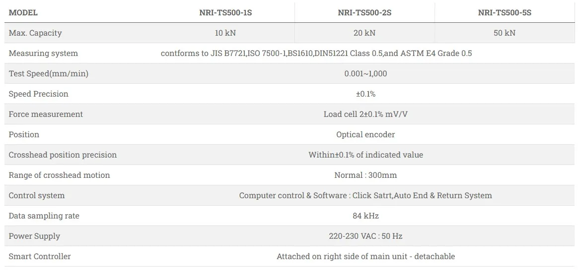 The NRI-CPT-XX Economy System Universal Testing Machine offers reliable performance for tension and compression tests up to 50 kN. Equipped with a sturdy linear motion guide, precision servo motor, and planetary gear reducer, it delivers high efficiency with low noise. Designed to support various international standards (ASTM, ISO, EN, GB/T), it is ideal for testing materials such as plastics, metals, wires, bars, adhesives, and biomaterials — all managed through advanced NRI V.5 software for accurate and user-friendly operation.